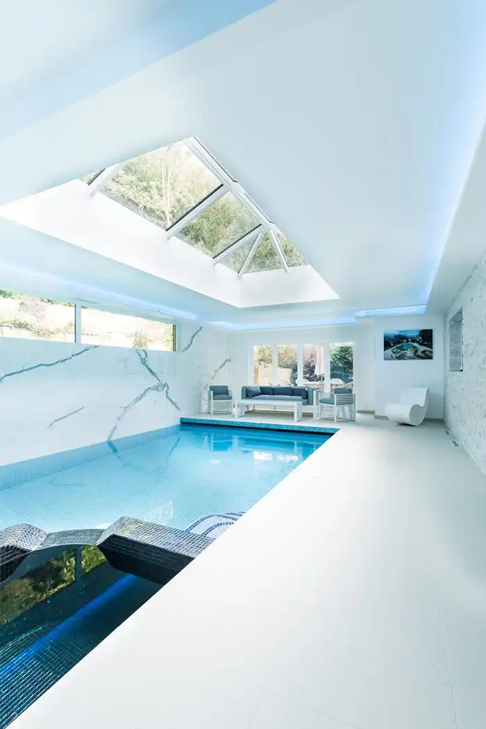 Our indoor pools range from approximately £446,000 to £568,000, and costs can exceed this based on your chosen specifications. Factors such as the size of the pool, finishes, fixtures, and optional features like changing rooms, saunas, gyms or kitchens will influence the final price.